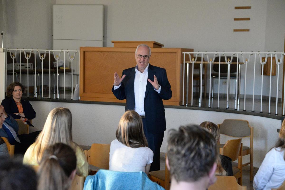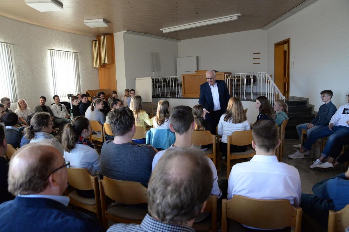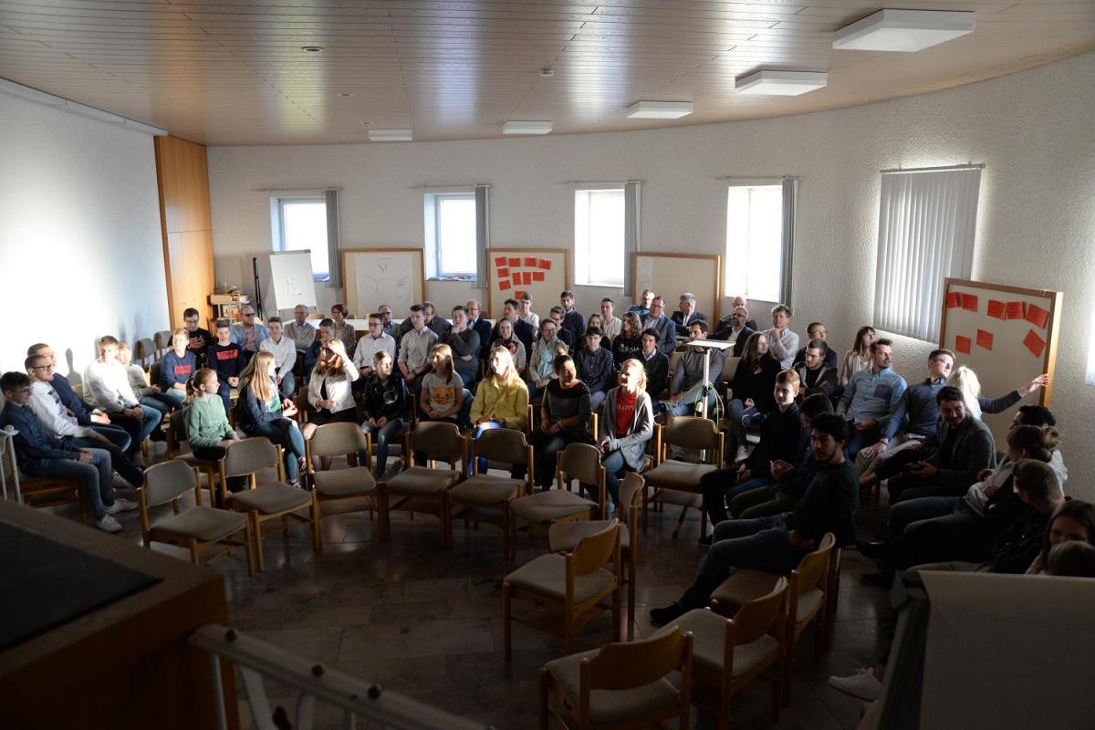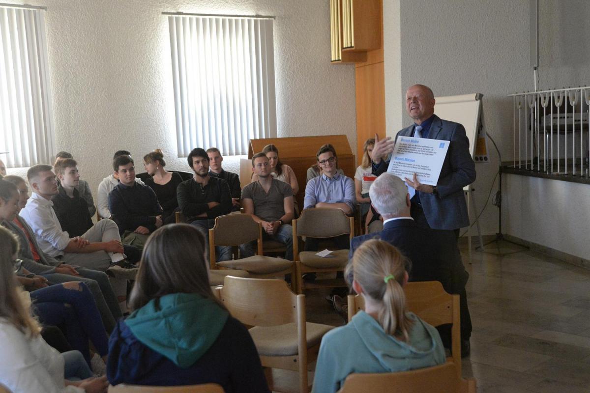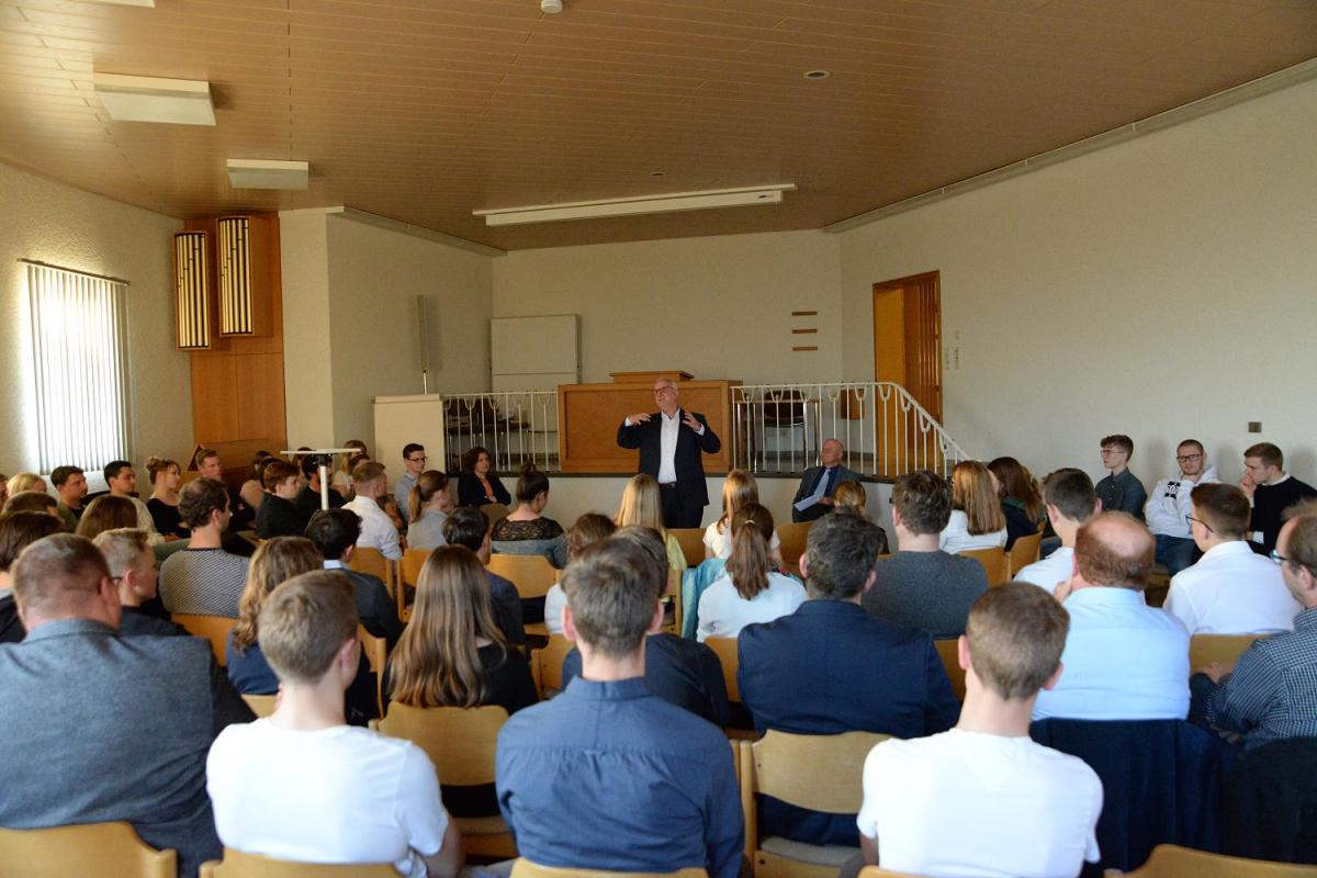 Des Weiteren stellte er einige Fragen in die Runde. Hierbei hatten zunächst die Jugendlichen die Möglichkeit sich zu äußern. Im Anschluss nahm Apostel Volker Kühnle Stellung zur jeweiligen Frage.