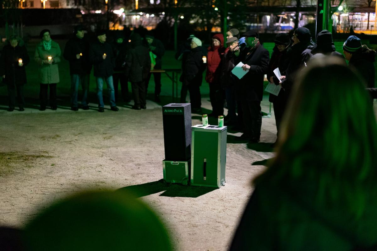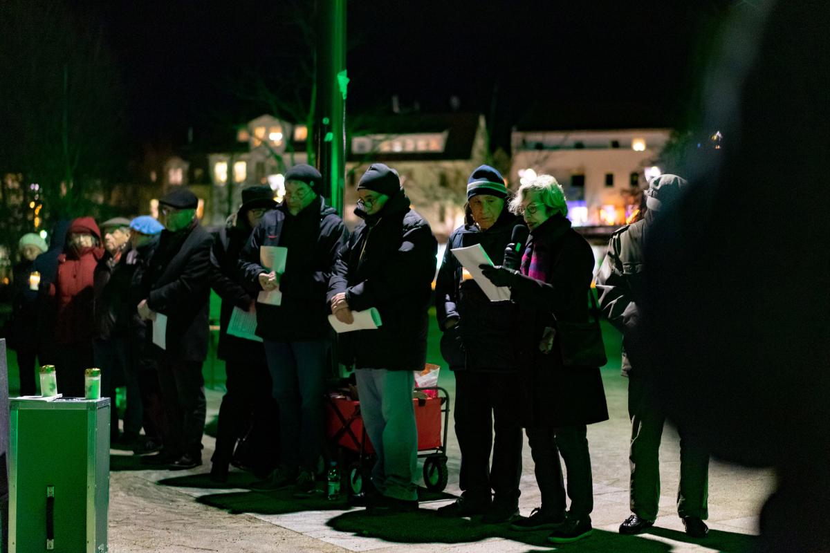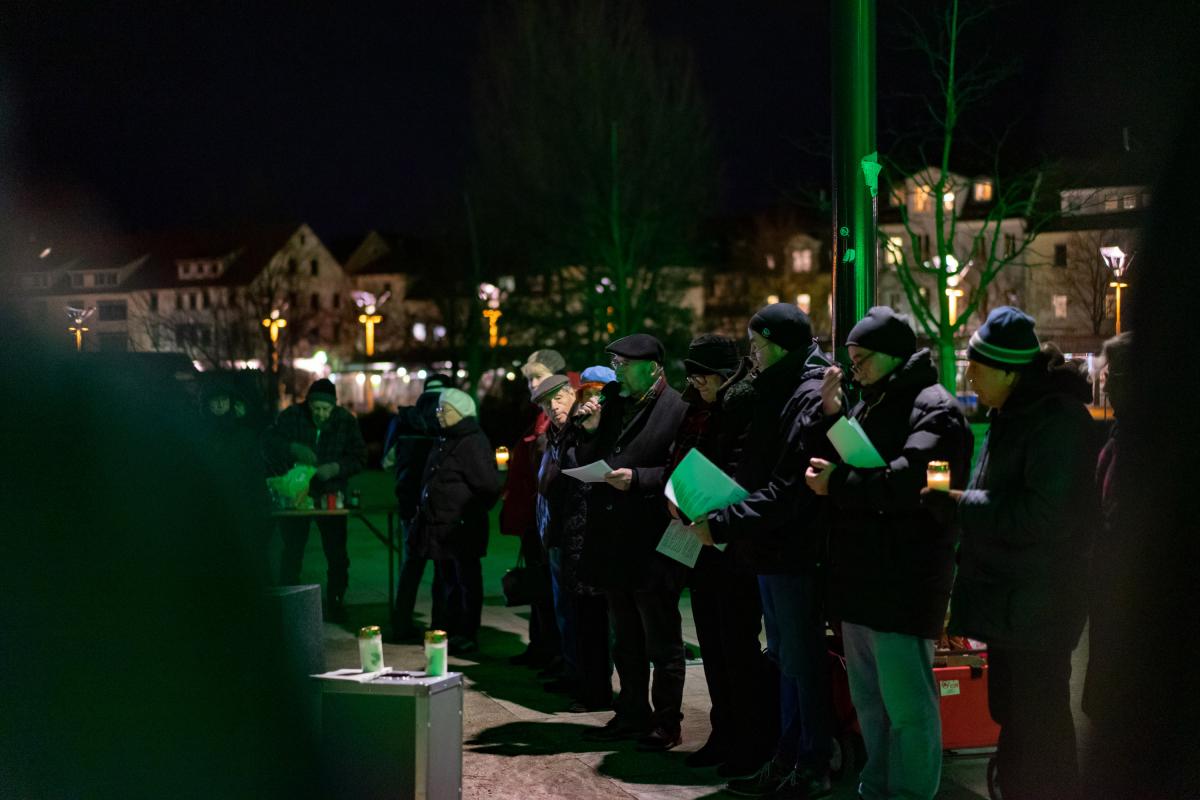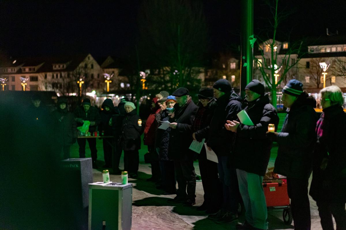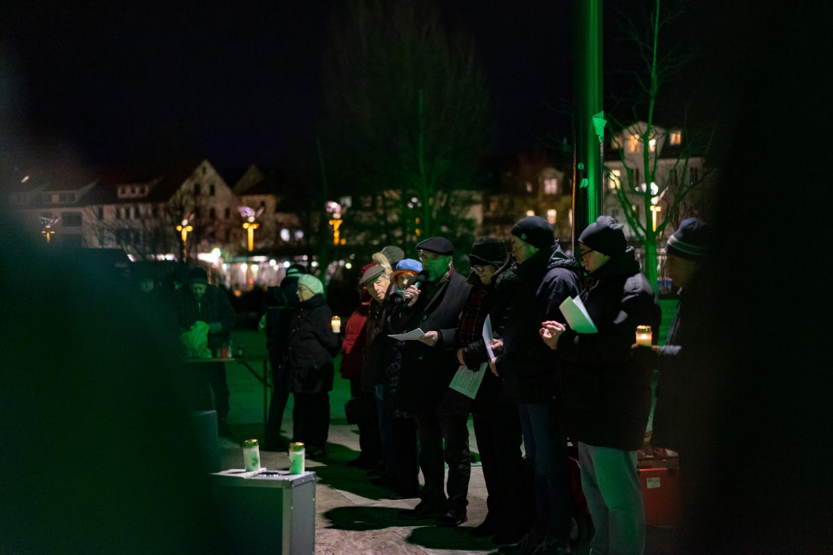 Etwa 80 gläubige Menschen, darunter auch Jugendliche unseres Kirchenbezirks, trafen sich am Montag, 16. Dezember 2019, zum letzten interreligiösen Friedensgebet des Jahres, am Baum der Religionen in Reutlingen.