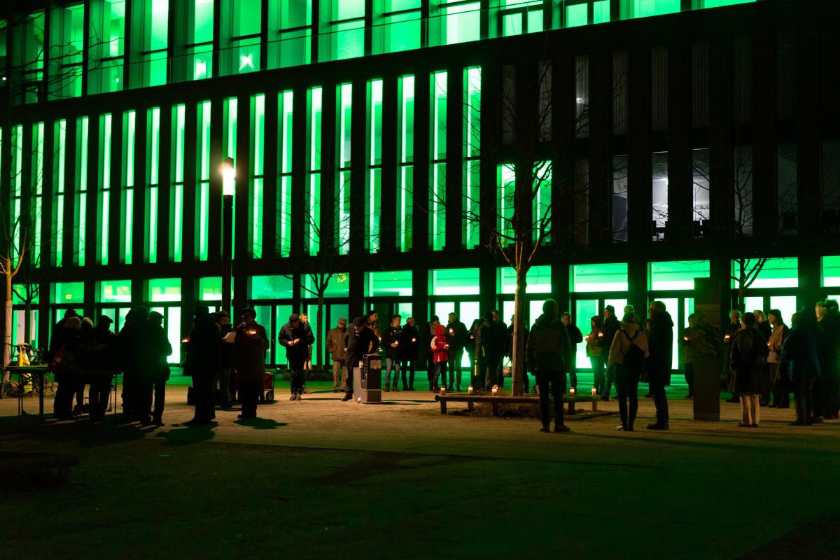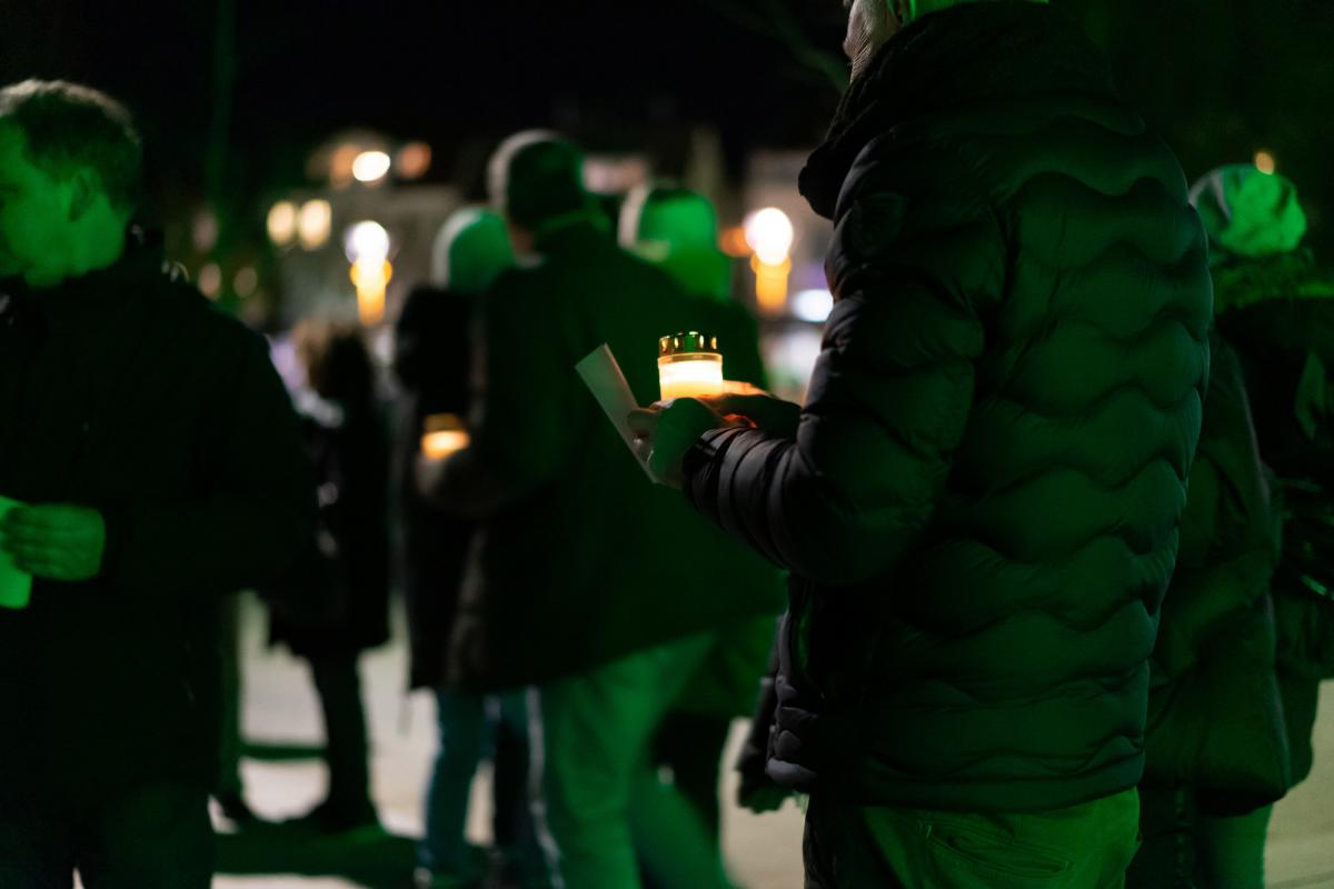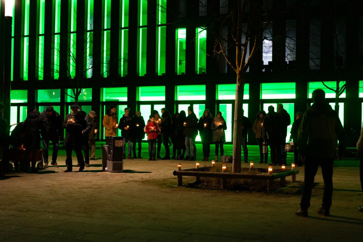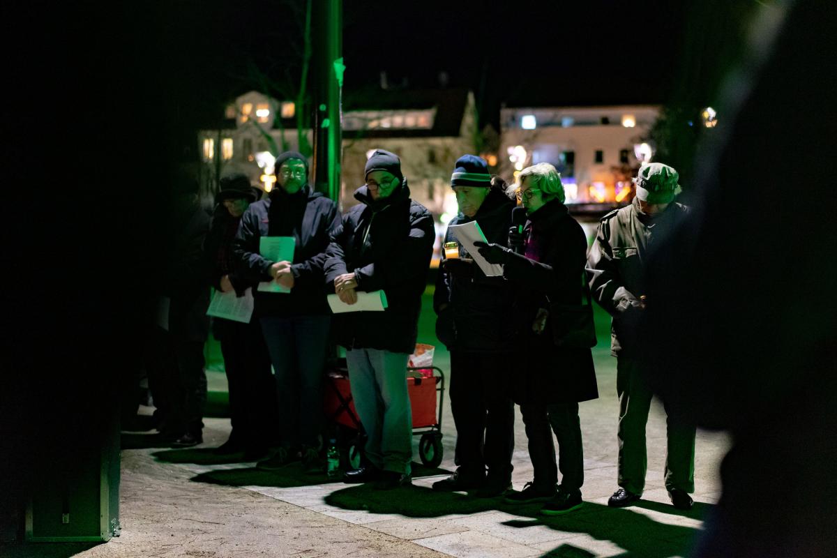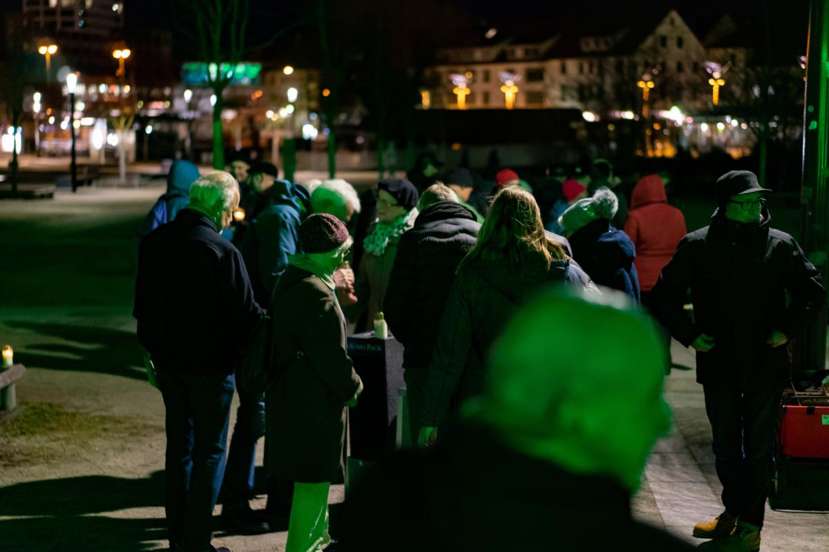 Etwa 80 gläubige Menschen, darunter auch Jugendliche unseres Kirchenbezirks, trafen sich am Montag, 16. Dezember 2019, zum letzten interreligiösen Friedensgebet des Jahres, am Baum der Religionen in Reutlingen.
